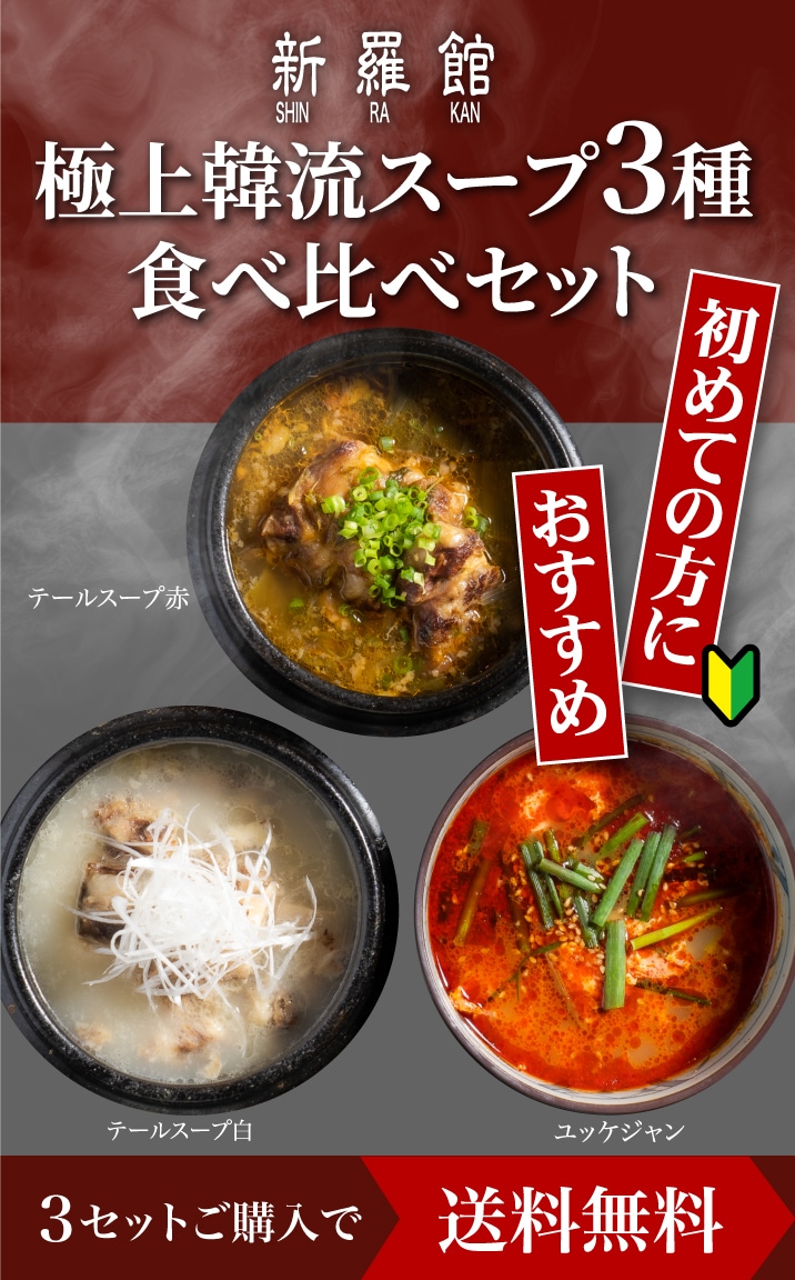 焼肉店が本気のスープをご自宅にお届け! ほろほろになった黒毛和牛を贅沢に使った韓流スープを 3種類食べ比べできるセットです。