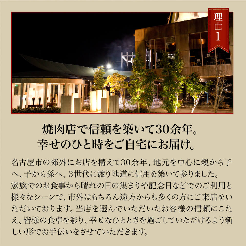 常に「食べる方」の立場になっておいしさの追求はもちろんのこと、ご注文からお届け、お召し上がりになるまでを考え、工夫と試行錯誤をして参ります。実店舗で直接お客様と接している焼肉店だからこそわかる「お客様のご意見」を大切に「また食べたい」「大切な方に食べてもらいたい」と感じていただけるように日々探求し続けます。