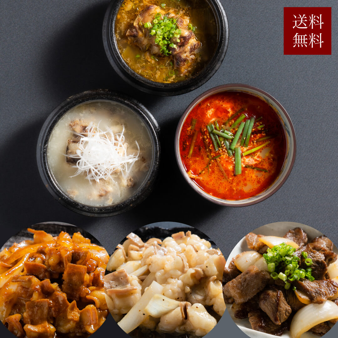 | 内容量 | テールスープ 赤 360g、テールスープ 白 360g、ユッケジャンスープ 360g 味噌焼きホルモン(玉ねぎ入り)400g、塩焼きホルモン(玉ねぎ入り)400g、赤身切り落とし(玉ねぎ入り)250g |