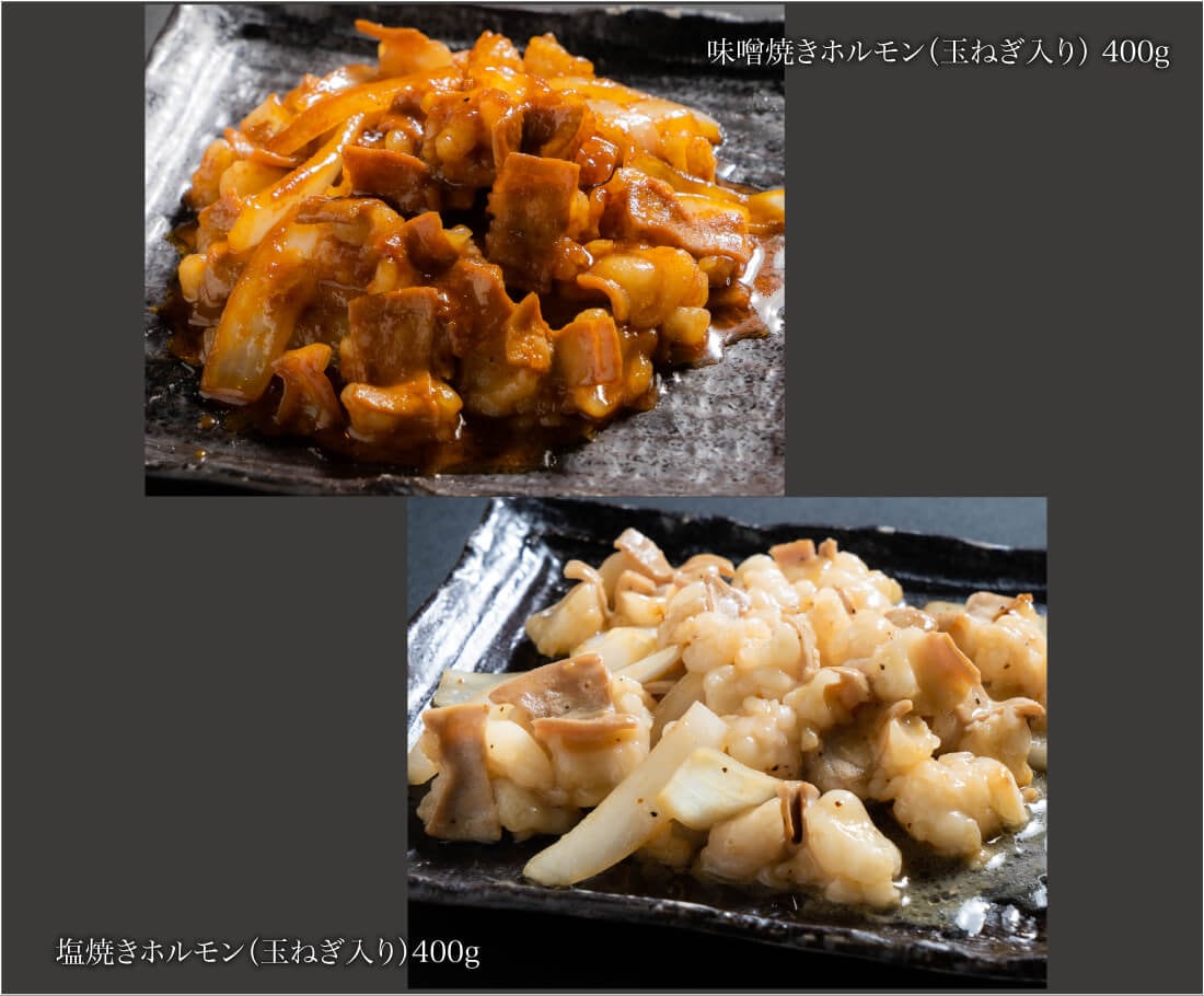 | 内容量 | 味噌焼きホルモン(玉ねぎ入り)400g 塩焼きホルモン(玉ねぎ入り)400g |